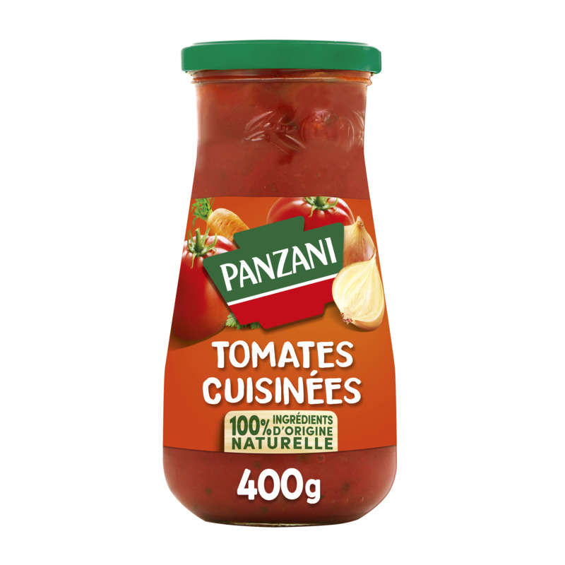 Ingrédients - Pulpe de tomates fraîches avec morceaux et purées de tomates fraîches 82%, oignons 9%, carottes 3,5%, huile d'olive vierge, sucre, sel, amidon, plantes aromatiques (dont persil 0,1%), extrait de légumes, ail frais, arôme naturel de laurier.